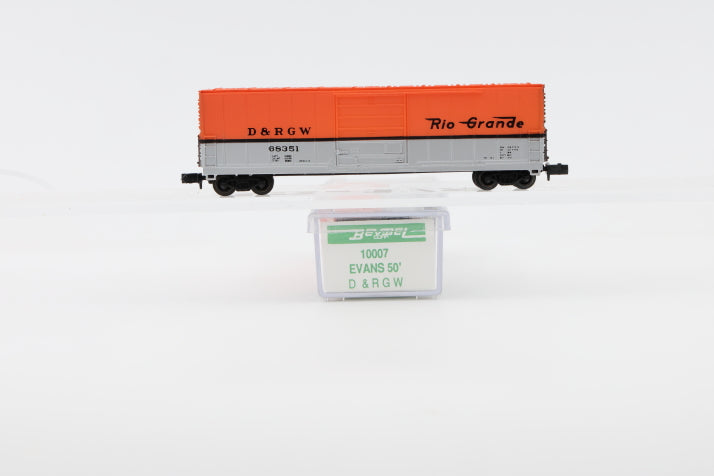 Bev-Bel N scale Rio Grande (DRGW) 50' Evans box car, 68351, 10007 Rapido Couplers