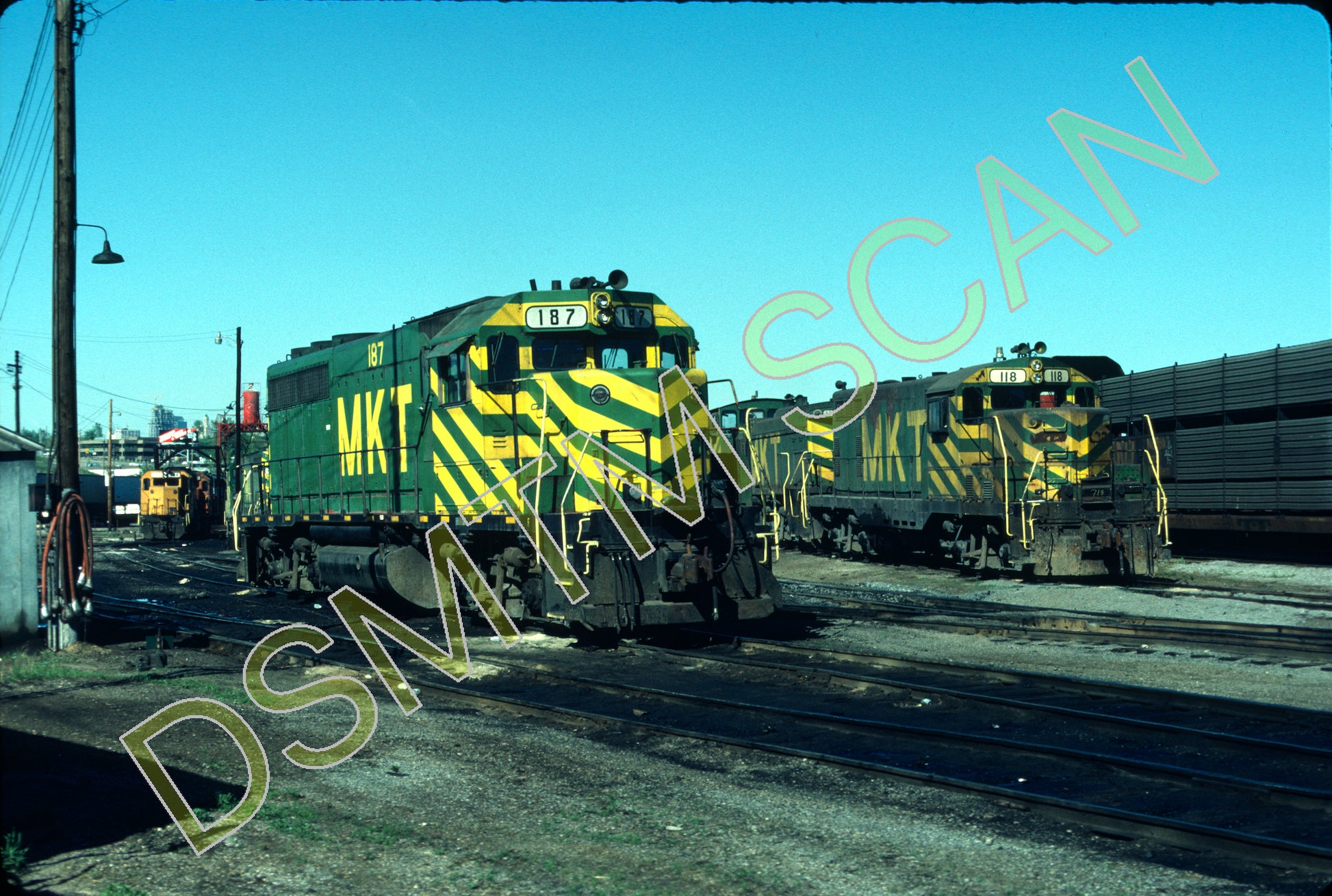 Original Kodachrome Slide, MKT GP40 187 and GP7 118 rest at Glen Park yard, Kansas City, KS.